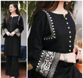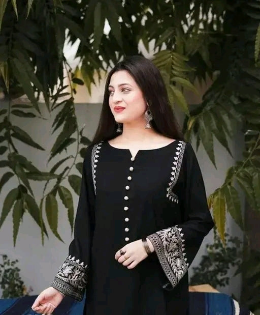 L (Bust Size: 40 in, Shoulder Size: 15 in, Kurta Length Size: 44 in, Kurta Hip Size: 42 in, Kurta Waist Size: 38 in, Bottom Waist Size: 30 in, Bottom Hip Size: 32 in, Bottom Length Size: 39 in)